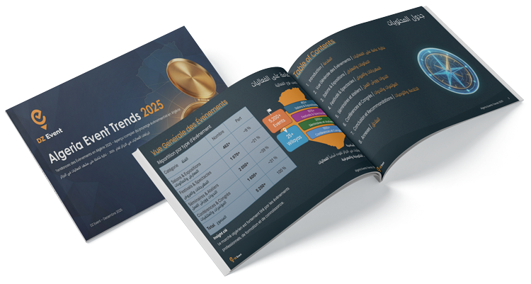 Ce rapport contient des données collectées et des estimations issues de diverses sources, y compris la plateforme DZ Event et des institutions publiques. Bien que les informations soient préparées avec soin, elles sont fournies à titre indicatif uniquement, et DZ Event décline toute responsabilité concernant leur utilisation à des fins autres qu’informatives.