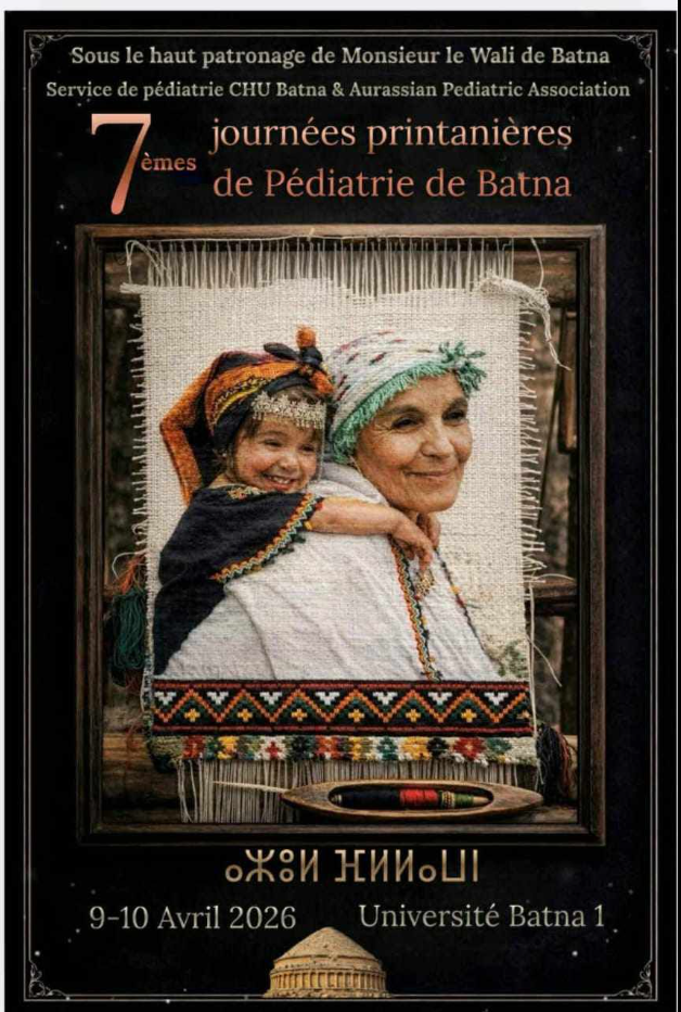 es 7èmes Journées Printanières de Pédiatrie de Batna se tiendront les 9 et 10 avril 2026 à la Salle de conférence de l’Université Batna 1.