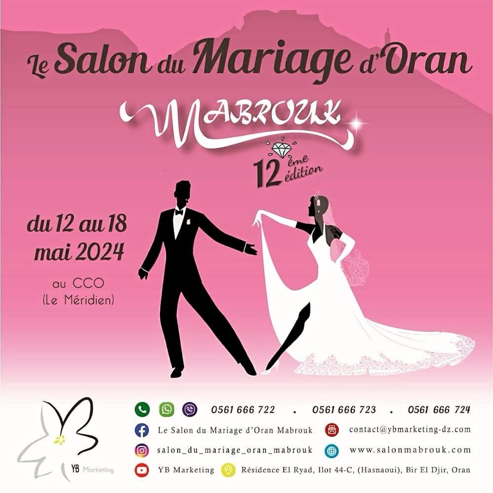 Le Salon du Mariage d’Oran « Mabrouk » est un événement annuel destiné au grand public, édité pour la première fois en 2013 par l’agence YB Marketing au Centre de Conventions d’Oran (CCO Hôtel Le Méridien).