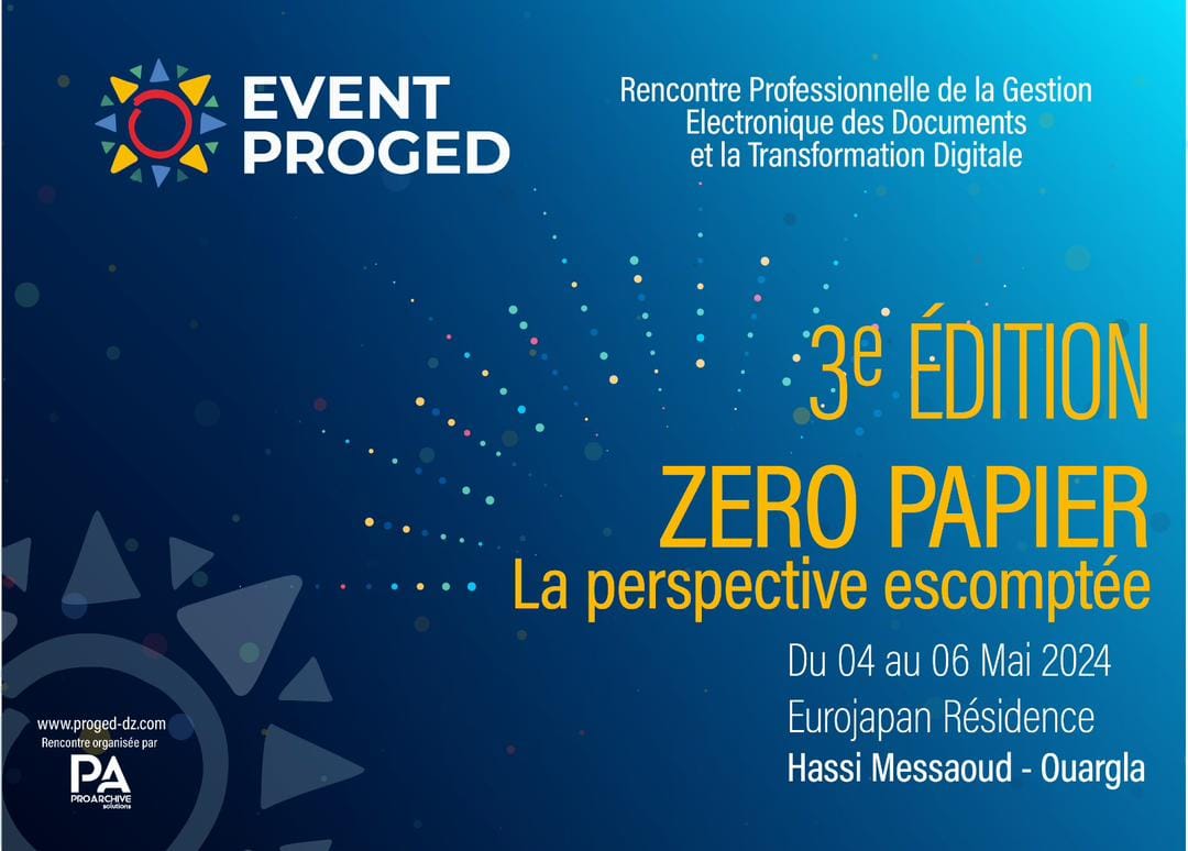 La rencontre professionnelle de la gestion électronique des documents et la transformation digitale en Algérie pour sa troisième édition PROGED revient du 04 au 06 Mai 2024 à Hassi Messaoud la résidence Eurojapan.