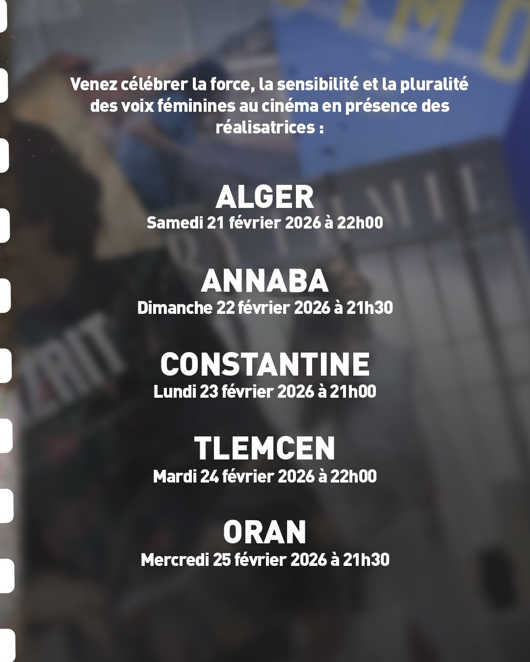 Rendez-vous à Tlemcen le 24/02/2026 à 22h00 pour une nuit cinématographique à ne pas manquer.