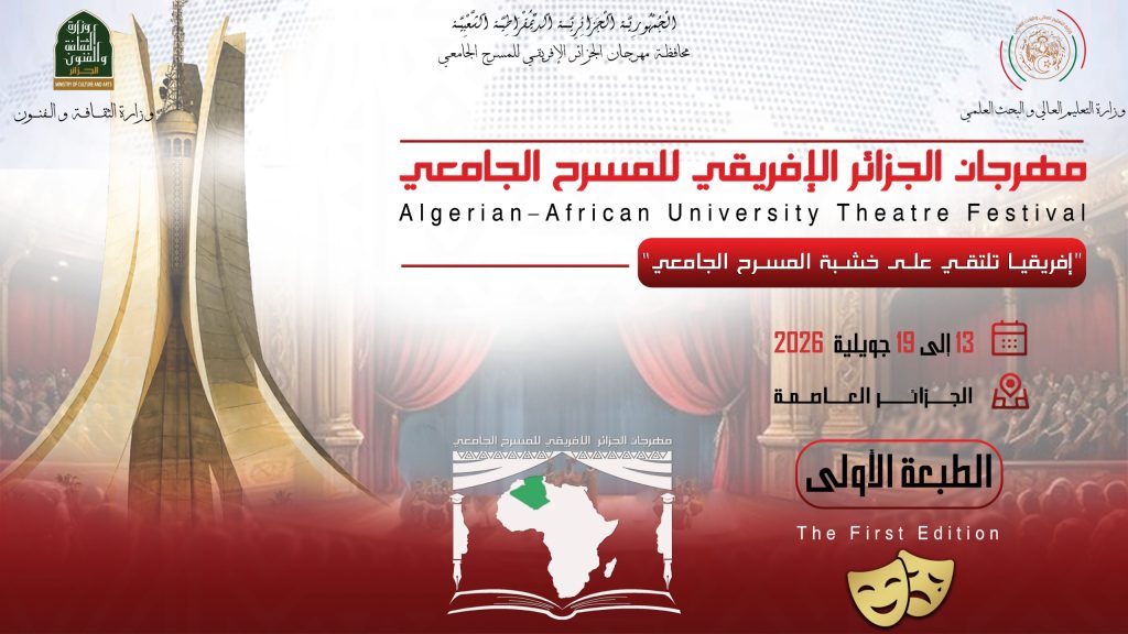 استعدوا لحدث استثنائي يجمع القارة السمراء في قلب الجزائر العاصمة حيث تنطلق الطبعة الأولى من مهرجان الجزائر الإفريقي للمسرح الجامعي تحت شعار إفريقيا تلتقي على خشبة المسرح الجامعي